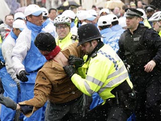 Стычки полиции с демонстрантами начались сразу после старта эстафеты у стадиона Уэмбли, сообщает ИТАР-ТАСС. Трое представителей протибетских организаций попытались перехватить зажженный на арене факел перед внесением его в двухэтажный автобус. Еще один манифестант, переодевшийся в полицейскую униформу, совершил попытку погасить олимпийский огонь из огнетушителя.
