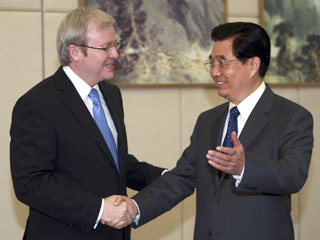 На встрече с прибывшим в Китай премьер-министром Австралии Кевином Радом, китайский руководитель отметил, что противоречия между правительством и сторонниками Далай-ламы - это вопрос предотвращения раскола страны и защиты ее единства, не касающийся национально-религиозных проблем и проблем прав человека.