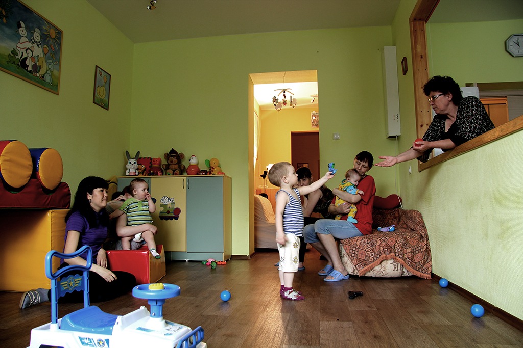 РА: — А почему мы начинаем направлять девушек на курсы, когда ребенку пять- шесть месяцев? Это время, когда ребенок уже знает лица других мам, уже познакомился со всеми, и он может на три-четыре часа оставаться без мамы. И тогда обычно две или три мамы ходят на курсы, а две или три — дома с персоналом.