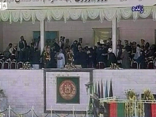 Выстрелы раздались в тот момент, когда президент, ряд членов кабинета министров, а также несколько иностранных дипломатов присутствовали на праздновании 16-й годовщины захвата Кабула моджахедами.