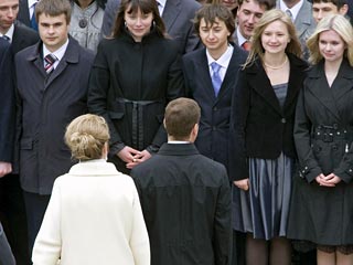 "Для стремительного технологического и интеллектуального рывка России нужны творческие, инициативные и ответственные за свою судьбу люди. И мы должны делать все, чтобы их личные победы легли в основу нашего общего успеха", - подчеркнул Медведев.