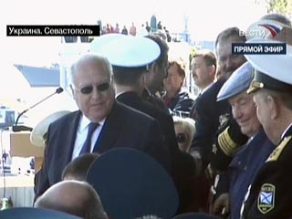 Лужков вместе с исполняющим обязанности министра обороны РФ Анатолием Сердюковым прибыли в Крым на торжества по случаю празднования 225-летия Черноморского флота РФ.