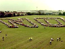 Демонстранты прошли маршем от станции Хаттон Кросс на западе Лондона до населенного пункта Сипсон, который будет снесен, если планируемое строительство состоится. А затем выстроились в гигантское слово "NO", которое можно было видеть с воздуха.