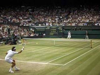 Федерер, который неизменно побеждал на Уимблдоне последние пять лет, проиграл первые два сета с одинаковым счетом 4:6. В третьей партии при счете 5:4 в пользу швейцарца и на подаче Надаля организаторы лондонского турнира решили приостановить поединок из-за дождя.