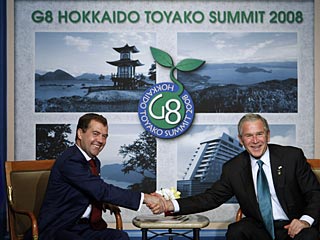 Медведев и Буш встретились на Хоккайдо и обменялись комплиментами