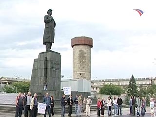 На площади была установлена бутафорская заправочная колонка в виде человека, к виску которого был приставлен пистолет подачи топлива. В ходе пикета несколько человек подожгли этот макет, а потом разломали то, что не успело сгореть, сообщает "Интерфакс".