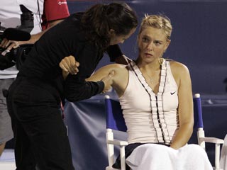 После победы над Мартой Домаховской в своем первом матче на турнире в Монреале Мария Шарапова сообщила, что из-за травмы плеча не сможет продолжить борьбу, информирует Reuters.