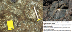 После этой длительной преамбулы переходим, наконец, к обещанному обсуждению значения статьи Ингрид Пит и Скотта Брайана. Одно из предсказаний Яна Кэмпбелла [7], бывшее, к слову сказать, и в исходных статьях [2, 3], выглядит так: «Трапповый вулканизм (на языке оригинала — flood volcanism) должен предваряться сводовым поднятием гор порядка 500-1000 метров в центре свода». Однако к 2005 г. было уже известно, что двум крупнейшим фанерозойским вулканическим событиям -Сибирским траппам на континенте (возраст ~250 млн. лет, площадь распространения ~7 млн. км2, объем ~4 млн. км3) и тихоокеанскому плато Онтонг-Джава (возраст ~120 млн. лет, площадь распространения ~2 млн. км2, объем ~60 млн. км3) -не предшествовало никаких сводовых поднятий гор. Вероятно, по этой причине в работе [7] «наилучшим задокументированным примером сводового поднятия гор» назван район траппов Эмей-шань (возраст ~260 млн. лет, площадь распространения ~0,25 млн. км2, объем ~0,2 млн. км3), о котором сообщили мировому сообществу китайские геологи [8]. Следует отметить, что уже на конференции в Форт-Уильямсе высказывались сомнения в корректности геологической интерпретации в работе [8]. Статья этих же авторов в специальном выпуске № 430 Геологического общества Америки (Geological society of America), бывшая доступной в сети для комментариев с ноября 2006 г. по январь 2007 г., сопровождается критическими замечаниями Уоррена Гамильтона (Warren Hamilton) [9]. Смысл этих комментариев сводится, мягко говоря, к тому, что в природе такое просто невозможно.