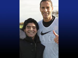 Главный тренер сборной Аргентины Диего Марадона посетил тренировку "Манчестер Юнайтед" для того, чтобы оценить форму нападающего "красных дьяволов" Карлоса Тевеса, а также чтобы поздравить с днем рождения Рио Фердинанда, которому исполнилось 30 лет. Легендарный аргентинец подарил защитнику "МЮ" свою футболку с автографом.