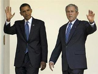 Пока же Барак Обама и Джордж Буш пытаются обеспечить по возможности гладкую передачу власти. В понедельник, сообщает газета, в ходе визита четы Обама в Белый дом новоизбранный президент и Буш начали переговоры о процессе передачи власти, а Лора Буш показала Мишель Обаме ее новое жилье.