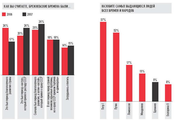 Особенно трудно пришлось образованным людям на периферии. Они особенно ностальгируют по брежневскому времени, несмотря на тогдашний дефицит всего и вся — от фильмов до водки и мяса. Об этом люди сегодня предпочитают забыть. Россия — это сообщество людей, которые не верят, что они могут что-то сделать со своей жизнью. Больше 2/3 считают, что их жизнь им не принадлежит. Россия — это бедное общество, в том числе бедное возможностями. В бедных обществах ценят стабильность, а не изменения. Мантра этой стабильности — «лишь бы не было хуже». Нас постоянно пытаются убедить, что сегодняшняя эпоха — самая благополучная и стабильная. Но события последних двух-трех месяцев не оставили от чувства стабильности и следа. Зарплаты снижаются, инфляция растет, рубль ослабевает — уверенность в завтрашнем дне исчезает. В этой системе координат и строится та блаженная земля под названием «эпоха Брежнева».