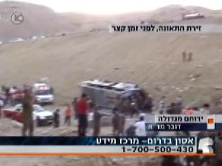 Инцидент произошел на трассе №12, на участке между аэропортом "Увда" и Эйлатом. Автобус вылетел за ограждение и упал в пропасть глубиной около 80 метров, в нем находились россияне, прилетевшие в аэропорт "Увда" и направлявшиеся в Эйлат, сообщает NEWSru Israel. По данным сайта Mignews, автобус перелетел через ограждения, которые идут вдоль дороги, и, несколько раз перевернувшись в воздухе, рухнул в овраг с высоты порядка 60 метров.