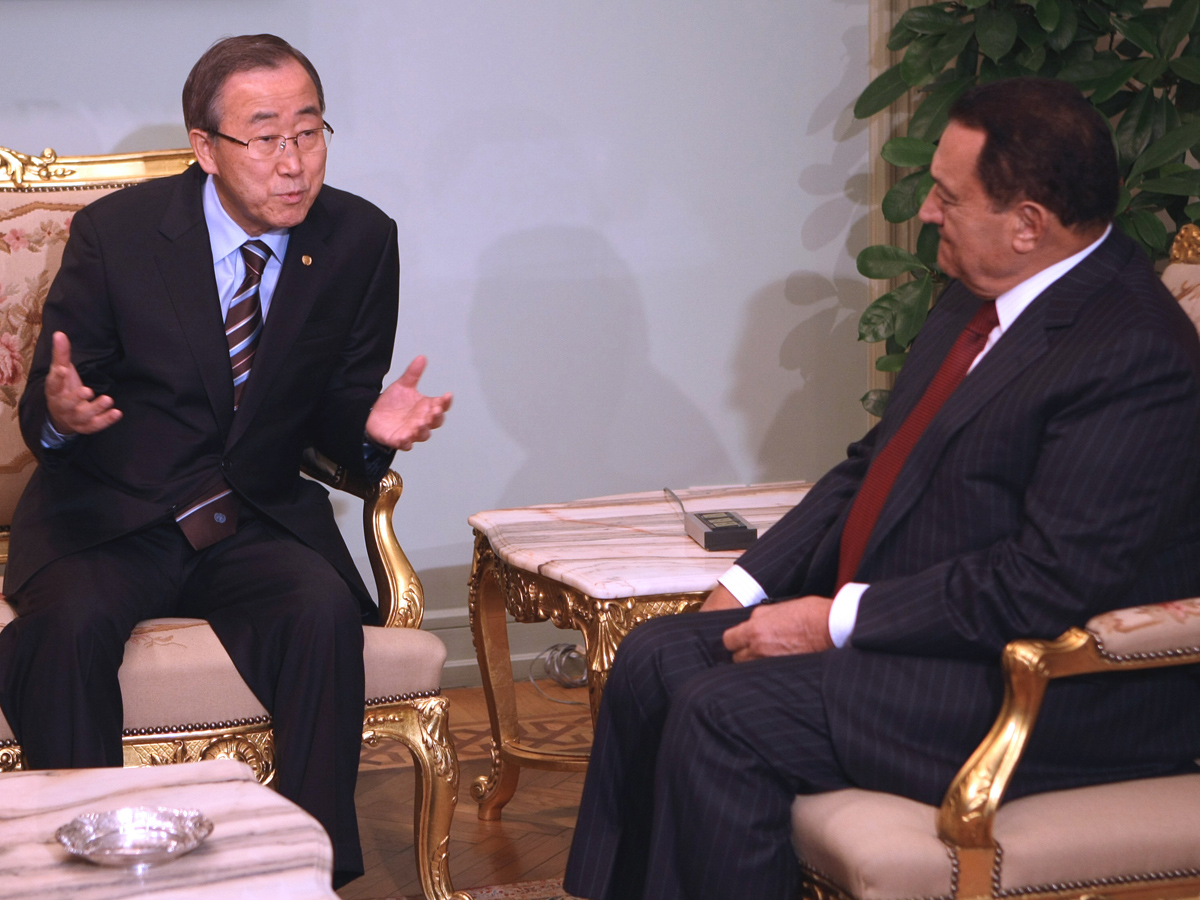 Вчера, в среду, в среду генеральный секретарь ООН Пан Ги Мун, начавший почти недельное турне по Ближнему Востоку, встретился в Каире с президентом Египта Хосни Мубараком, министром иностранных дел этой страны Ахмедом Абуль Гейтом и с Генеральным секретарем Лиги арабских государств Амр Мусой.