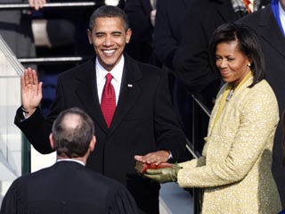 Президентскую присягу у Обамы принял председатель Верховного суда США Джон Робертс. Обама является первым в истории США афроамериканцем, который стал президентом США.