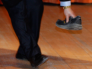 Ботинок становится популярным "оружием" у современных участников протестных акций, однако "оружие" не всегда достигает своей цели.