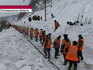 Инцидент произошел сегодня в 11:40 местного времени /7:40 мск/ на границе Хакасии и Кемеровской области в том же месте, где в субботу лавина накрыла товарный поезд. Железнодорожники занимались ликвидацией последствий этого завала.