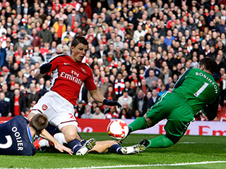 Российский форвард отличился уже на 2-й минуте встречи: Андрей поразил ворота с близкого расстояния после передачи Тео Уолкотта. Второй мяч Аршавин забил на 65-й минуте, после демонстрации своих индивидуальных действий: около лицевой линии он обыграл защитника и, под острым углом прорвавшись к воротам, послал мяч над голкипером.