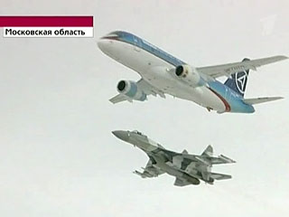 Как передает ИТАР-ТАСС, первый Superjet на подлете к аэродрому встретили два истребителя Су-30. Самолет и два истребителя появились в районе взлетной полосы около 12:55, совершив небольшой круг почета над Жуковским. Затем сначала Superjet, а потом истребители поочередно приземлились.