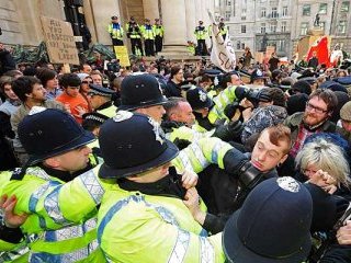 В среду, 1 апреля, в лондонском Сити вспыхнули серьезные столкновения манифестантов с полицией. Группа молодых людей прорвала оцепление, разбила стекло в офисе "Королевского банка Шотландии" и бросила внутрь дымовые шашки.