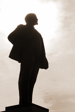 Г-н Никитин начал с возложения цветов к подножию вождя и учителя. В этот момент солнце коснулось головы Ильича, образовав золотую корону мученика, пострадавшего от взрывников у Финляндского вокзала.