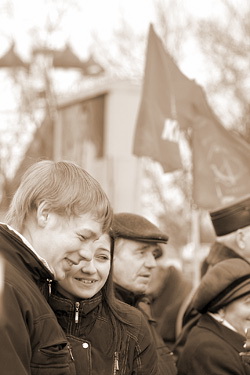Когда ведущий начал зачитывать резолюцию митинга, люди потянулись на выход, не дожидаясь слов. Одной из первых тронулась школьница. Не выпуская из рук красного стяга, она медленно дрейфовала к остановке вместе с взрослой дамой.