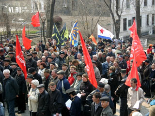 По данным УВД Владивостока, митинг собрал на Корабельной набережной около ста человек, преимущественно бывших военнослужащих, их жен, гражданских специалистов, которые трудятся в воинских частях.
