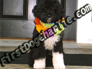 Как сообщает Washington Post, первым фотографию шестимесячного щенка португальской водной собаки опубликовал в субботу веб-сайт firstdogcharlie.com. По данным этого ресурса, семья Обамы первоначально хотела назвать собаку Чарли, однако потом дочери президента придумали ему имя Бо - в честь кота своих родственников.