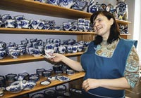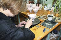 Сам себе промысел Пока объединение погружалось в небытие, местное население выживало по своим рецептам. Сегодня гжель в Раменском районе производят около 10 малых и средних предприятий и сотня мелких артелей. Все они — выходцы из объединения. Именно их Виктор Логинов неустанно обвинял в контрафакте, оценивая ежегодный ущерб от «фальсификаторов» в 100 млн рублей. «Директор внушал всем, что гжель — это только то, что выпускается объединением, — говорит Сергей Алехин, руководитель ООО «Звезда Гжели». — Но ведь все мы работаем на одном и том же сырье, обжигаем изделия тем же газом, пишем теми же красками. В чем тут подделка?» На предприятии Сергея Алехина сегодня работают около 30 человек. Многих он переманил из объединения. Это было нетрудно: у Алехина всегда тепло и платят вовремя. Средняя зарплата — 25 тыс. рублей, а лучшие живописцы получают по 35 тыс. Раз в год все художницы проходят 10-дневный курс массажа спины за счет предприятия: остеохондроз — главная болезнь гжельских живописцев. «Самое важное для меня — не деньги, а чтобы людям было хорошо», — поясняет Алехин. Он по себе знает, что такое работать в холоде и без зарплаты. В 2000 году Сергей окончательно расстался с объединением и начал свое дело. Нашел собственный фирменный стиль — голубую «волну» по краю изделия — и часами высматривал оптовых покупателей у сувенирных магазинов, предлагая им свою продукцию.
