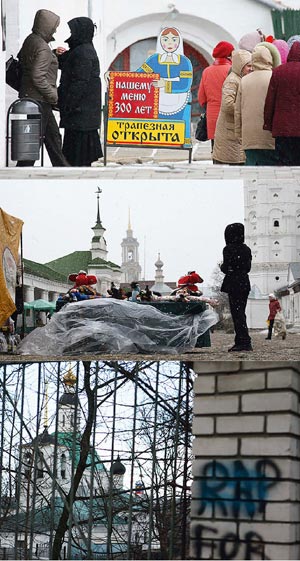 Оптимистичные прогнозы и у правительства Ярославской области. «Кризис нам только на руку, — убежден руководитель областного управления коммуникаций и общественных связей Андрей Тутариков. — Мы уверены, что сможем увеличить приток туристов в полтора раза по сравнению с прошлым годом». Озабочены внутренним туризмом и в Кремле. «Помимо духовного и культурного направления мы должны и туристическую отрасль поставить на ноги, — заявил недавно президент. — Наше богатейшее историческое и культурное наследие является поистине грандиозным ресурсом для развития турбизнеса». Дело за малым: убедить российских туристов, что наше наследие настолько лучше любого другого, что за него и платить надо дороже, и разные неудобства ради него необходимо терпеть. «Мы всерьез рассчитывали, что будет дешевле, ехали сюда из Москвы на машине, на три дня, — рассказала The New Times туристка из Москвы Татьяна, приехавшая в Ростов Великий с семьей. — А тут сами не заметили, как потратили столько денег, что хватило бы даже на Италию. Причем ничего за это не получили. Храмы закрыты, поесть нормально негде, да и отношение хамское».