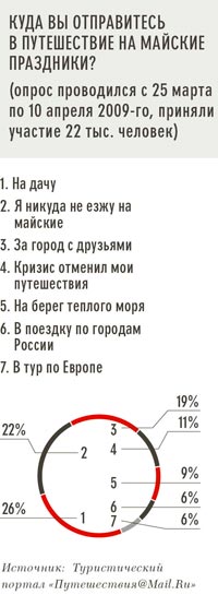 Мир, труд, дача. Праздник, который исторически связан с борьбой за права трудящихся (стр. 48), уже давно ассоциируется совсем с другими вещами: весной, первым выездом на природу, огородными заботами, началом туристического сезона. Демонстрации в первомайском расписании также присутствуют. Однако социологи «Левада-Центра» принципиальных изменений масштабов народного волеизъявления не прогнозируют. Большинство 1 мая, как и в прежние годы, выберет мирные обывательские радости. The New Times исследовал весенние предпочтения россиян