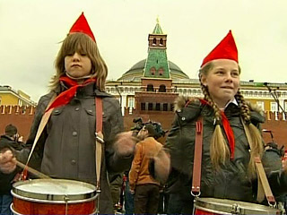 Отряды школьников, выстроившиеся на Красной площади, хором повторили пионерскую клятву, после чего Зюганов и депутаты Госдумы и Мосгордумы поздравили их и повязали им красные галстуки.