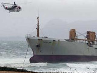 По данным издания, судно следует из Калининграда на Канарские острова. Экипаж 22 человека - все граждане России. "Первому приказу изменить курс и идти в Брест он не подчинился, пришлось высылать вертолет французских ВМС", - отмечено в публикации. Морской вестник сообщает также, что рефрижератор "Matterhorn" дедвейтом 9 тыс. 752 тонны и постройки 1985 года принадлежит греческой компании "Eastwind (Hellas).