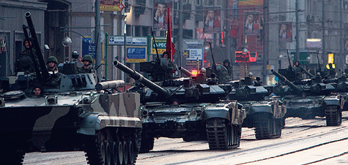 «Сегодня утром по всей Океании прокатилась неудержимая волна стихийных демонстраций. Трудящиеся покинули заводы и учреждения и со знаменами прошли по улицам, выражая благодарность Большому Брату за новую счастливую жизнь под его мудрым руководством».