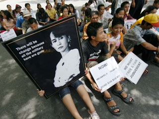Аун Сан Су Чжи - дочь первого лидера независимой Бирмы Аун Сана, убитого в 1947 году. После окончания Оксфордского университета в 1988 году она вернулась в Бирму и стала одним из лидеров Национальной лиги за демократию. В 1989 году Лига выиграла многопартийные выборы в стране, однако военная хунта не захотела уступать власть.