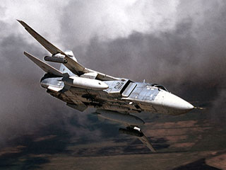 Су-24М - серийный бомбардировщик, принят на вооружение в 1974 году. Он способен подниматься на высоту 11 км и развивать скорость в 1430 км/ч. Вооружение - встроенная шестиствольная 23-мм пушка ГШ-6-23М, управляемые ракеты класса "воздух-поверхность", "воздух-воздух", корректируемые бомбы.