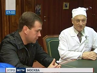 Он также сообщил, что частично удалось восполнить потерю крови и сейчас артериальное давление поднялось до почти нормального уровня. Между тем Федоров отметил, что прошло еще мало времени и судить пока об эффективности всех лечебных мероприятий довольно трудно. Он заверил Медведева, что врачи делают все возможное, и Евкуровым занимаются 20 ведущих профессоров института. "Все, что необходимо, делается", - заверил академик.