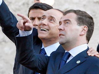 Как сообщает агентство, после окончания рабочего заседания лидеров "восьмерки" Медведев поехал на Соборную площадь Аквилы. Здесь его встретил премьер-министр Италии Сильвио Берлускони, в сопровождении которого Медведев осмотрел пострадавшие здания.