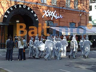 Месяц спустя в Петербурге произошел еще один скандал с участием военнослужащих. Как сообщил "БалтИнфо" очевидец, на частной вечеринке в одном из петербургских баров выступил военный оркестр в костюмах кроликов из Playboy. Свои слова читатель подтвердил фотографиями.