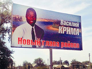 На прошлой неделе рекламные щиты с изображением Жоакима Крима и слоганом "Новый глава района" появились вдоль основных дорог в Средней Ахтубе. По мнению местных наблюдателей, выдвижение "волгоградского Обамы" выгодно действующему главе района Владимиру Романову: на фоне разбитного чернокожего кандидата добродетели старожила среднеахтубинской политики, видимо, должны стать еще заметнее.