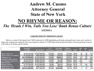 Сам прокурор Куомо заявил: "Банки говорят, что платят за высокие показатели работы, но в 2008 году таких показателей не было, а они продолжали выплачивать огромные суммы".