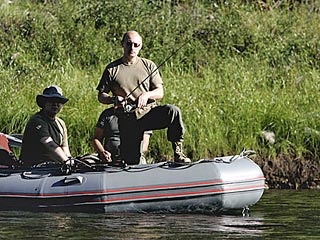 Российский премьер Владимир Путин на пути из Иркутска, где он совершил погружение на дно озера Байкал на глубоководном аппарате "Мир-1", остановился на однодневный отдых в Республике Тува. Он спустился по порожистой реке и насладился гостеприимством местного чабана.
