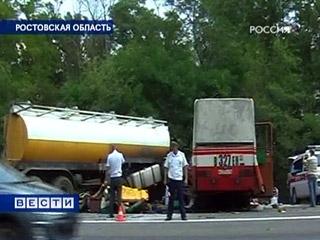 Автотехническая экспертиза признала виновником крупного ДТП в Ростовской области водителя грузового автомобиля Mercedes с полуприцепом-масловозом. Как "Интерфаксу" в четверг сообщили в СКП, эксперты пришли к выводу, что 54-летний водитель Владимир Попов грубо нарушил правила дорожного движения, что послужило причиной столкновения с рейсовым автобусом.