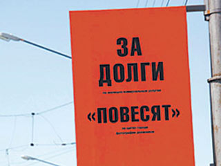 На плакатах должников обещают "повесить" на столбах. Правда, мелкими буквами уточняется, что повешены будут не сами люди, задолжавшие за коммунальные услуги, а только их фотографии.