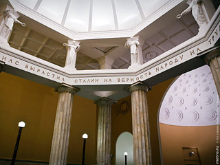 Он напомнил, что вестибюль станции является объектом культурного наследия, однако скульптуру Сталина, которая стояла в вестибюле при открытии в начале 1950-х годов, восстанавливать не стали.