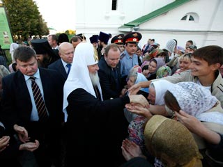 Как передает "Интерфакс", Патриарха во дворе кафедрального собора перед началом богослужения встретило епархиальное духовенство во главе с архиепископом Нижегородским и Арзамасским Георгием в лиловых облачениях, ученики православной гимназии города. Учащиеся епархиального женского училища в национальных костюмах поднесли Патриарху хлеб-соль, после чего под торжественное пение предстоятель вошел в собор.