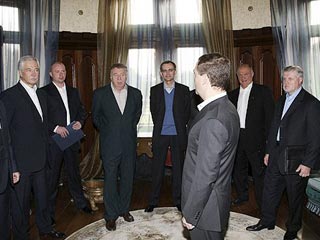 Президент России Дмитрий Медведев в субботу, на три дня раньше запланированного, проводит встречу с думскими фракциями. К главе государства приехали Борис Грызлов и Вячеслав Володин из "Единой России", Сергей Миронов и Николай Левичев из "Справедливой России". Владимир Жириновский и Игорь Лебедев представляют ЛДПР, Геннадий Зюганов и Иван Мельников - КПРФ. В беседе также участвует первый заместитель руководителя администрации президента Владислав Сурков.