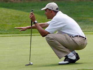Президент США Барак Обама за девять месяцев работы в Белом доме сыграл в гольф 24 раза, в то время как его предшественнику Джорджу Бушу понадобилось на это два года и 10 месяцев, сообщает таблоид Politico со ссылкой на репортера CBS Марка Ноллера.