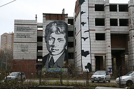 - Ну да, не отпимистичный. И на не очень оптимистичном здании он нарисован, и у нас внешний облик города не очень оптимистичный. Поэтому я его и нарисовал, чтобы показать властям и каким-то коммерческий организациям, что можно сделать красиво».