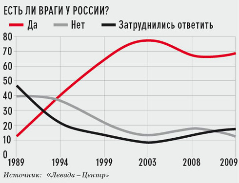 После того как Путин начал выстраивать вертикаль власти (установление контроля над СМИ, отмена выборов губернаторов, регионального и местного самоуправления, ужесточение избирательного законодательства), власть приняла на себя функцию основного охранительного начала и все больше нуждалась в постоянно воспроизводимом образе врага. Кто им будет — не столь важно. Важно — что он есть. Врагами в итоге, как уже говорилось, оказались ближайшие соседи — страны Балтии, Украина, Грузия. Первое место прочно заняла Латвия в 2005 году, ее относили к врагам 49% опрошенных, дальше шла Литва. После скандала вокруг демонтажа памятника Бронзовому солдату в Таллине, в лидеры уверенно вышла Эстония. Внутри «вражеской» шестерки (Грузия, США, Украина, страны Балтии) страны меняются местами, но это связано лишь с сиюминутной политической конъюнктурой. В негативном секторе пребывает и Польша. В ходе очередной экономической войны за «мясо» российские власти, отменив праздник 7 ноября, назначили праздничным днем 4 ноября. День народного единства приурочили к дню победы народного ополчения над польскими интервентами в 1612 году. Поляки на контрвыпады тоже не скупятся, и критика авторитарных тенденций, характерных для нынешней России, звучит из Варшавы все чаще. Сейчас Польша держит за собой уверенное седьмое место в списке «врагов России», но если отношения двух стран продолжат ухудшаться, россияне вполне могут пересмотреть свое отношение и к полякам. Кто будет следующим на роль внешнеполитического дьявола — покажет время.