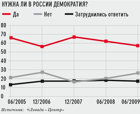 Любопытно, что при всем негативе в отношении США или ближайших соседей, взявших курс на евроинтеграцию, россияне положительно относятся к демократии. 60% граждан заинтересованы в том, чтобы жить в демократической стране. Не придают значения политической системе лишь 29%. Большинство граждан России, 67%, считают важным, чтобы люди самых разных взглядов, в том числе и идущих вразрез с мейнстримом, могли выражать их, не опасаясь преследований (в остальном мире приверженцев свободы слова насчитывается 86%). Впрочем, главными друзьями России респонденты называют страны с авторитарными режимами — Белоруссию (50%), Казахстан (38%), Китай (18%).